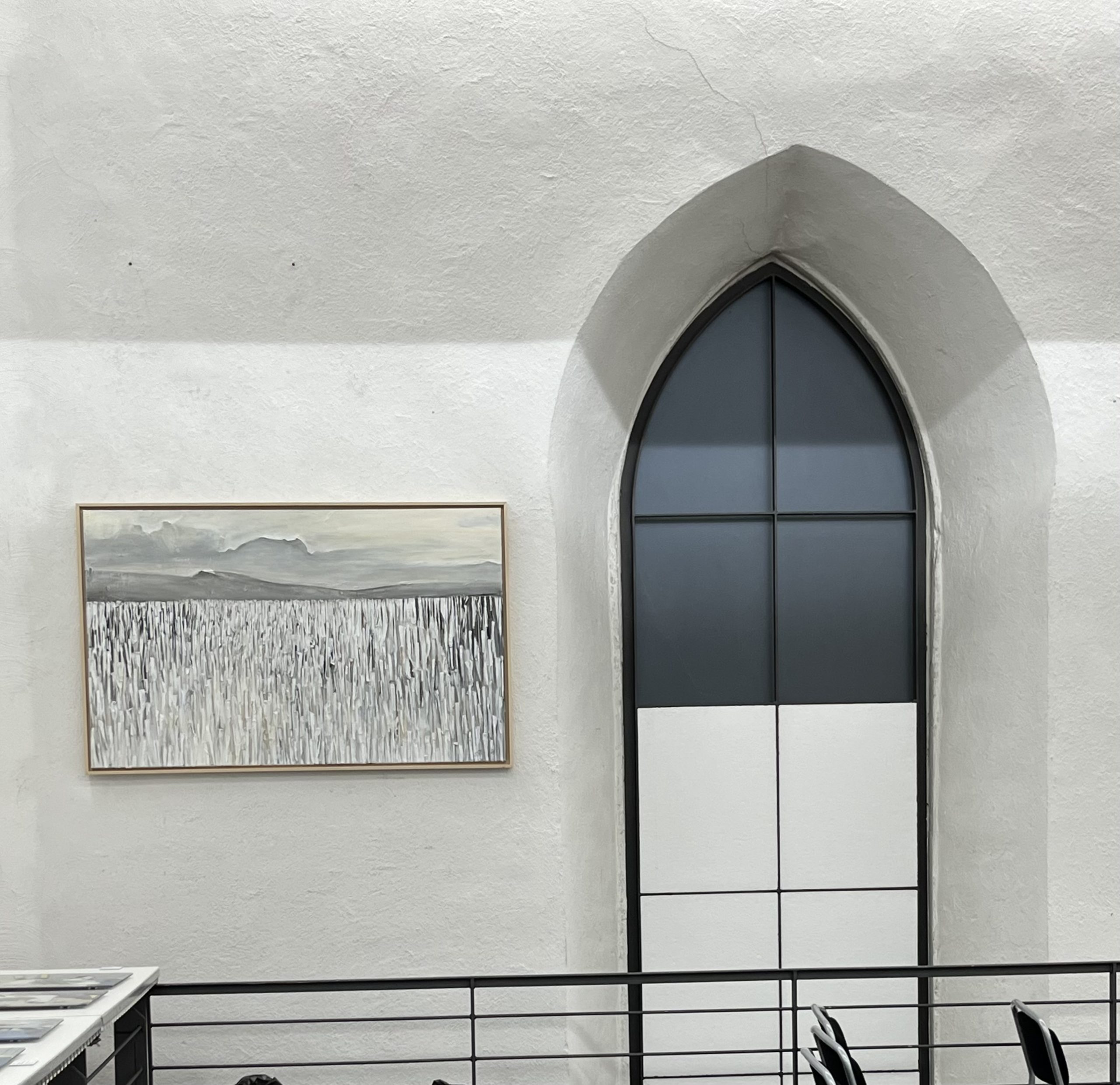 Der erste Pinselstrich ist das Orgelspiel, durch das ein Gedanke, ein Musikstück, ein gelesenes Wort die zu gestaltende Form annimmt. In reduzierter Farbigkeit setzen Papierstrukturen Akzente, heben das Wesentliche hervor, bergen und entdecken. Die Faltungen erheben sich über dem Metrum der Fläche, werden zum Kontrapunkt. Aus diesem Relief der Koloraturen erwächst der volle Klang über den Furchen und Schattierungen des Basso continuo.