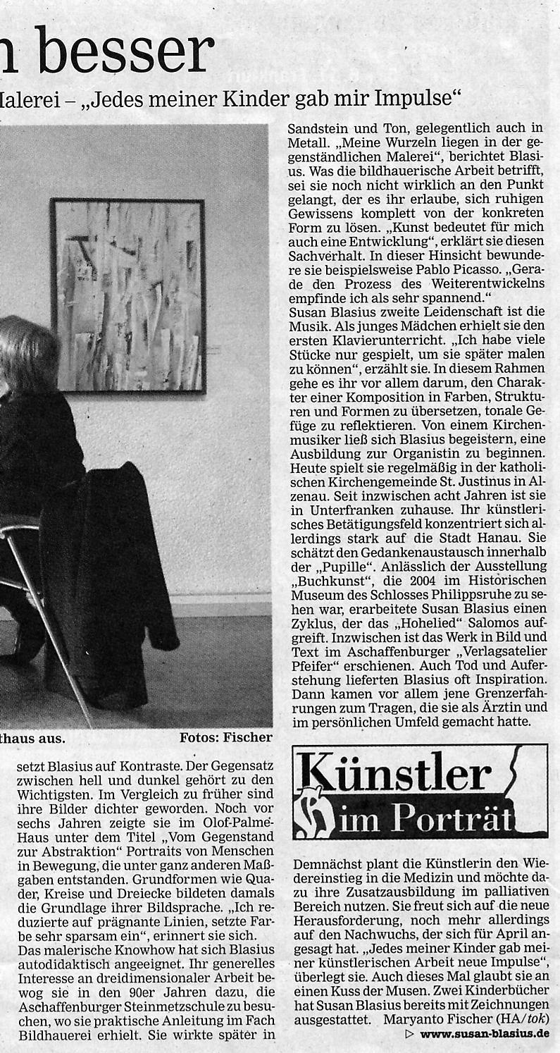 In der Reihe „Künstler im Porträt“: Susan Blasius